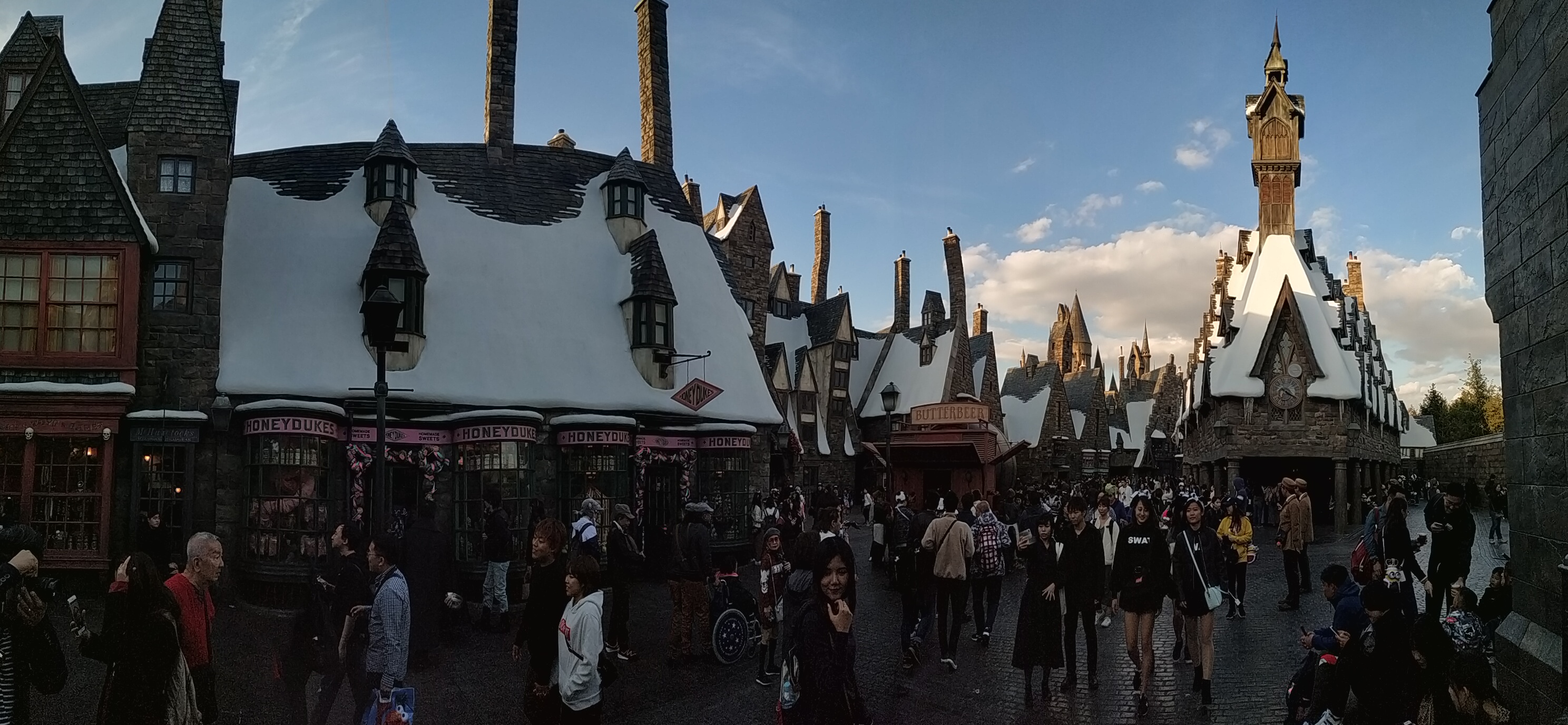 Besonders gefallen hat es uns im Harry Potter-Bereich (und jaaaa, ich habe weder die Filme gesehen, noch die Bücher gelesen – ich Banause!), die Details der Deko waren faszinierend! Und wenn man sich einen Zauberstab gönnte (diese Preise, huiuiui), konnte man seine Zaubertricks auch gleich selbst testen. Dafür gab es überall im Harry Potter Village Angestellte an diversen Punkten, die einem vorzeigten, wie der Zauberstab zu schwingen war um die Magie walten zu lassen. Und schon spuckte es hier Feuer aus dem Kamin und dort öffnete sich ein Tor…